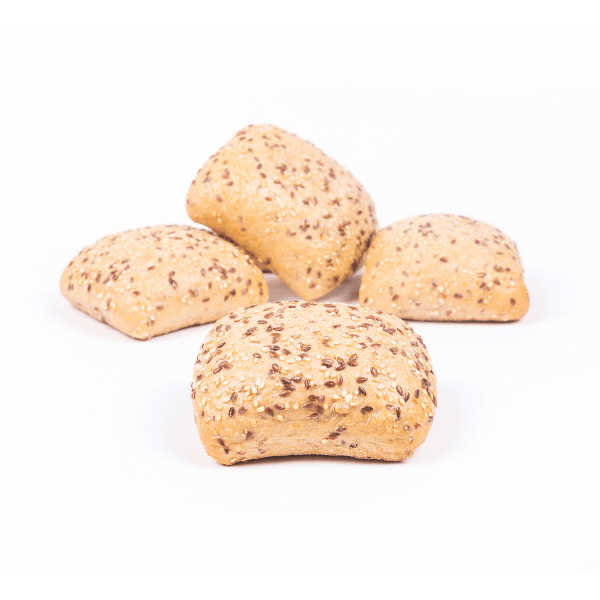 Panecillos hechos de masa de trigo con multiceleares y semillas de multicereales como decoración