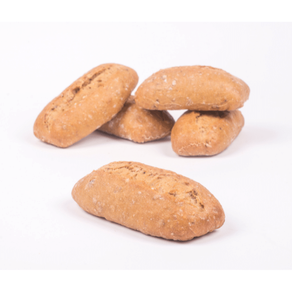 Mini panecillo con harina integral de trigo, hecho en horno de piedra. En pocos minutos tienes disponible un panecillo que mima a tus clientes con un aspecto rústico.